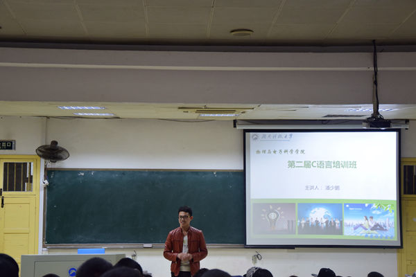 正式开讲前,吴秋霜老师对本届培训班首先作重要讲话。首先,他对培训班的举办做了充分肯定,并强调了C语言在日后寻求工作的重要性。他希望在场的同学能够用心学习,做到持之以恒,为日后的发展奠定基础。随后,彭亚平详细地介绍了C语言在日常生活中的用途,他希望同学们不忘初心,保持热情,将C语言学习到底。讲话最后,15级电子一班雷彪、物理一班柯希垚同学作为第一届C语言培训班优秀学员发言。他们分别围绕“坚持”、“用心”强调学习C语言的的重要性。在座的同学们全神贯注,认真聆听优秀学长们的学习心得。